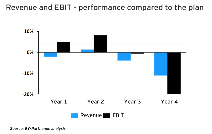 The revenue synergy sources and targets should drive the integration strategy and combined operating model. Companies should determine which synergies offers the most value and accordingly develop internal stretch targets to increase the likelihood of achieving the synergy targets. Targets for the transactions team should be around 20%–30% greater than publicly stated goals.
